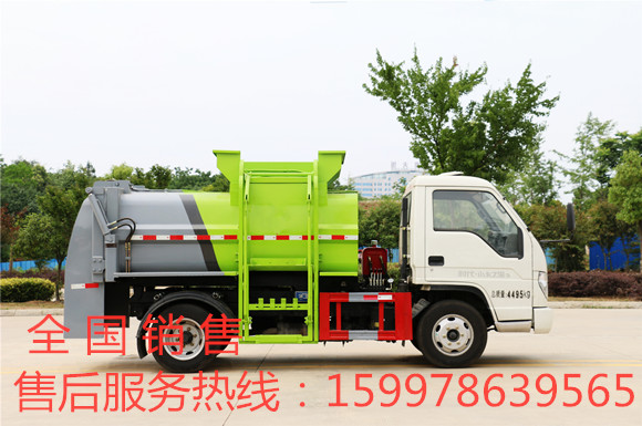 2、車(chē)身右側(cè)配液壓掛桶提升機(jī)構(gòu),可掛國(guó)標(biāo) 120/240 升垃圾桶,由油缸驅(qū)動(dòng)通過(guò)拉桿裝置實(shí)現(xiàn)機(jī)構(gòu)倒料和復(fù)位,提升機(jī)與進(jìn)料口結(jié)合,防止誤操作。