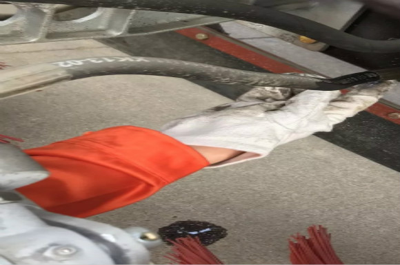 4.啟動底盤發(fā)動機,采用氣吹水,吹干滯留在左右噴桿、吸盤噴水桿、后噴霧桿里的水分